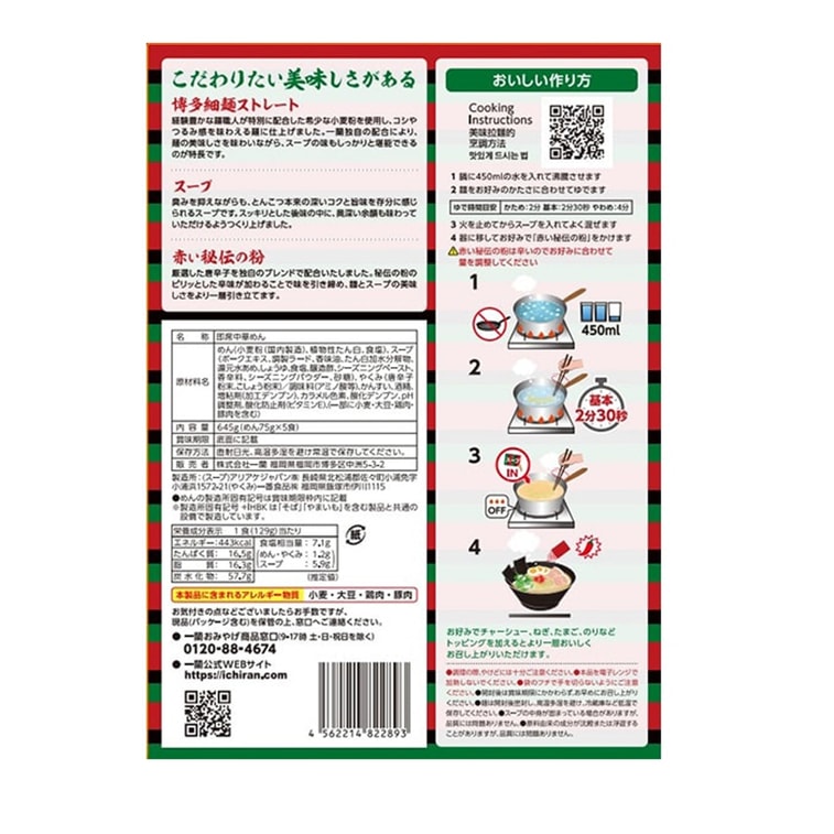 日本 一蘭拉麵 日式博多細麵 煮麵版 5食入 日版