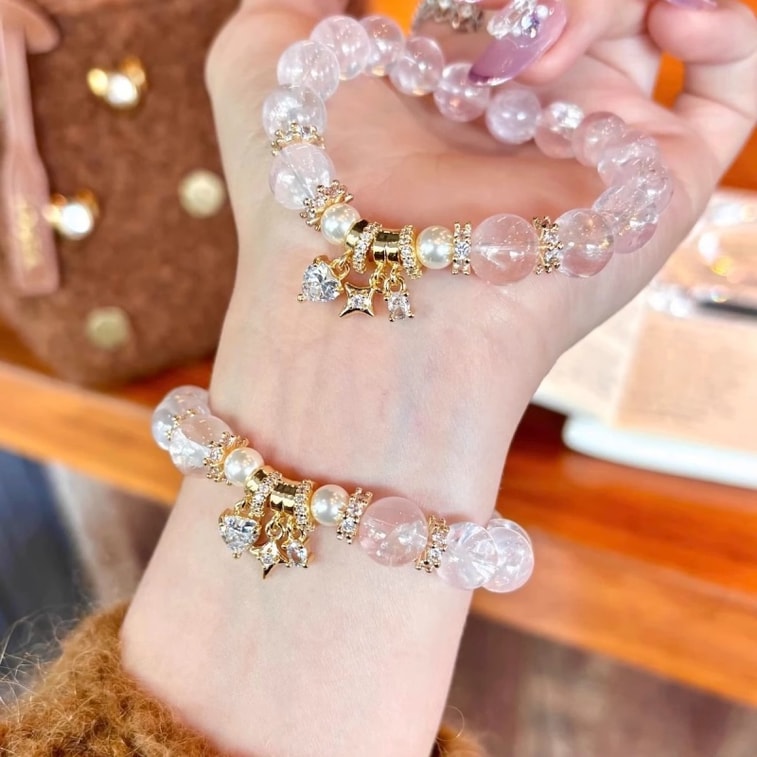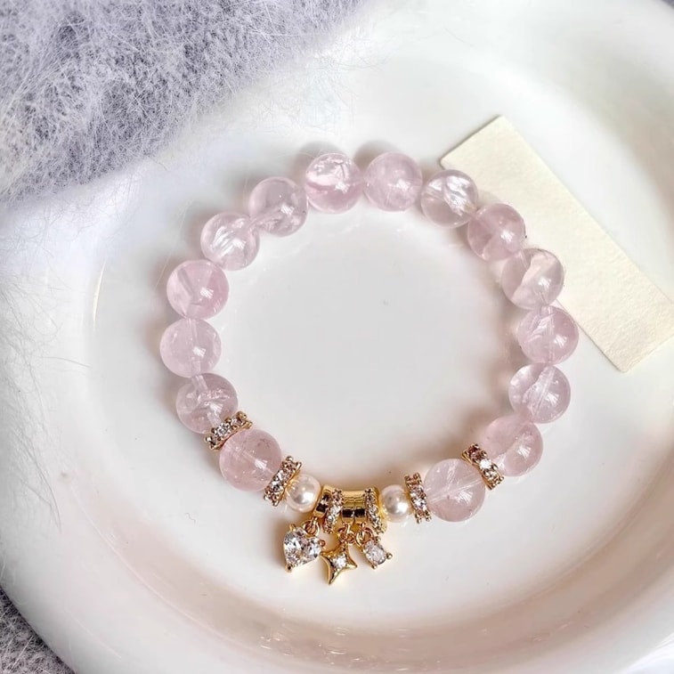 【招緣納福】天然星光粉水晶手鍊10mm 招桃花正緣 聖誕新年生日送禮佳選 愛情姻緣水晶手串 女款能量首飾品 情人節送禮必備