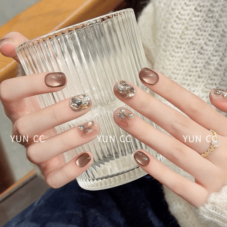 【中國直郵】 雲皙 純手工美甲高級感成品貓眼短指甲貼片薔薇蝴蝶S10片*1盒