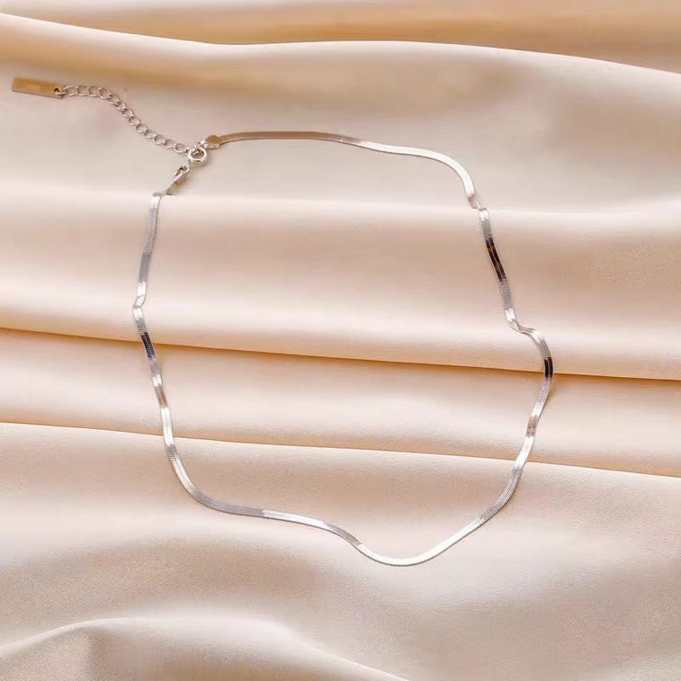 Fancy Jasmine 高級感鈦鋼扁蛇骨鏈 銀色 choker 1條 冷淡風必備高級感拉滿 通勤必備