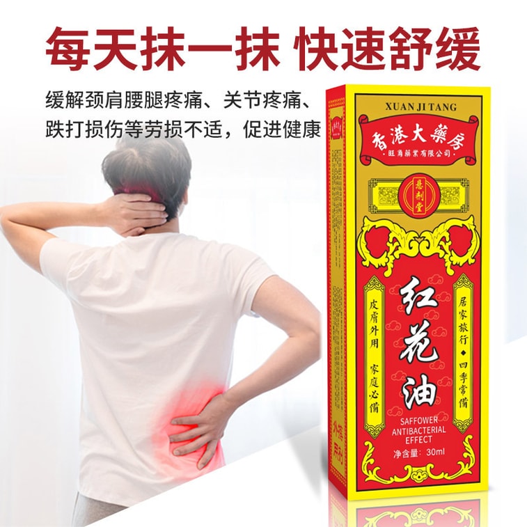Hong Kong Pharmacy Safflower Oil 30ml Active Oil Joint Pain Relaxing Massage Oil