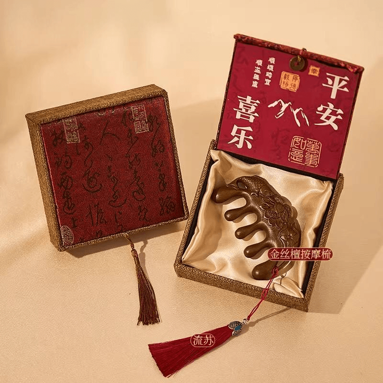 【中國直郵】 翰正 馬年文創本命年春節新年禮物實用金絲檀木按摩梳+流蘇禮盒12*12cm*1盒