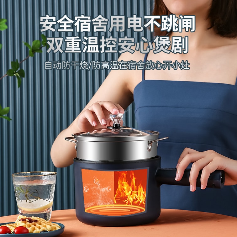 【中國直郵】梵洛 110V宿舍學生小電鍋多功能迷你電煮鍋一體 智慧版-寶藍色+蒸籠