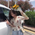 【中國直郵】HSPM新款刺繡開襟針織衫 杏桃色紅花 M