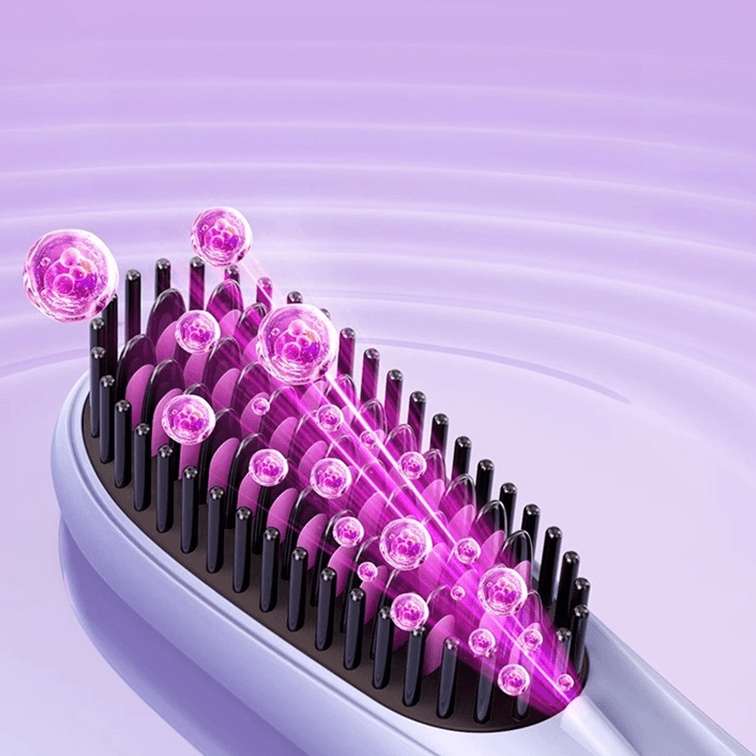 韓國HYUNDAI現代 無線直髮梳 便攜式捲髮棒神器 夾板充電款梳子 2億負離子不傷發 三檔控溫 #紫色
