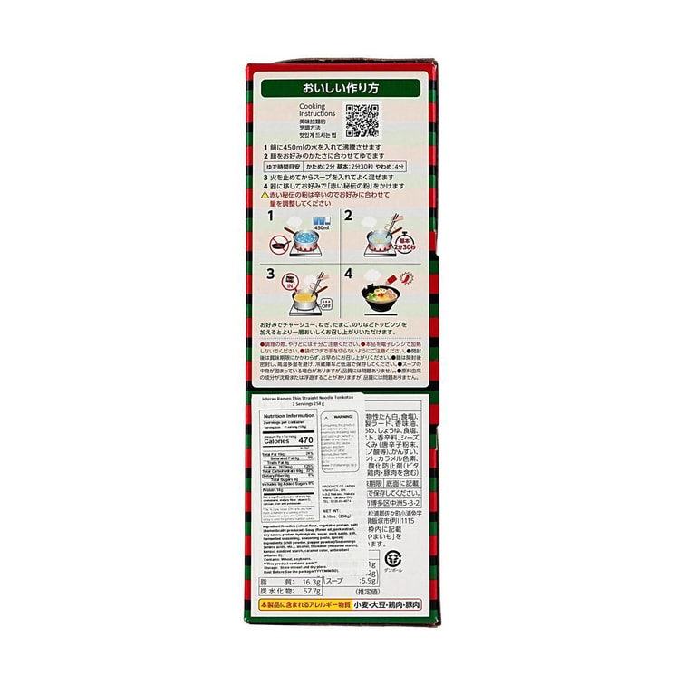 日本ICHIRAN一蘭拉麵 博多細麵 豚骨風味 煮麵版 2人份 258g【附秘製辣椒粉】【地區限定】