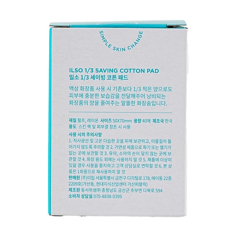 韓國ILSO一蘇 1/3超省水濕敷棉片 透氣柔軟化妝棉 40片 親膚柔軟