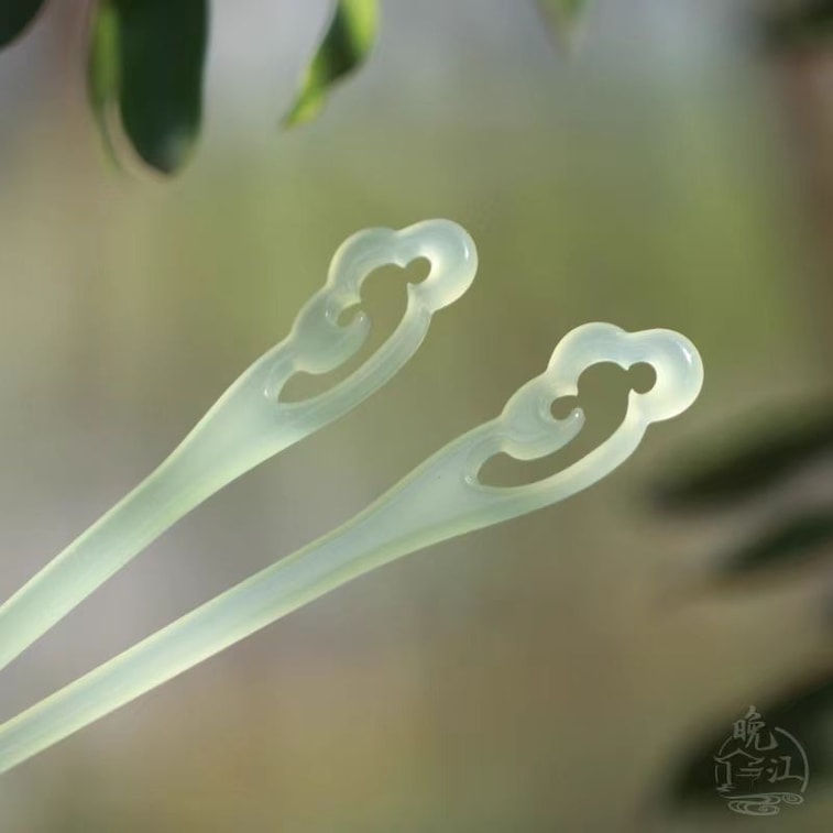 【中國直郵】 晚江亭 仿玉發簪 古風新中式簪子旗袍漢服盤發-綠色18cm 一對|*預計到達時間3-4週