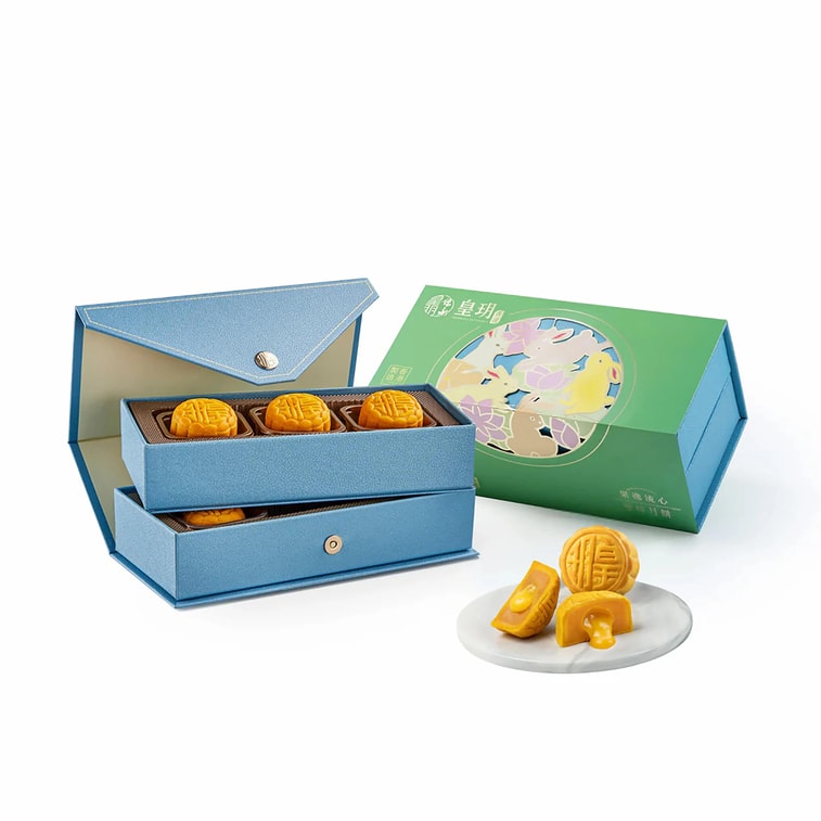 香港皇璣 果逸流心雙輝月餅 6枚 270g【流心奶黃月餅+流心貓山王榴槤月餅】【中秋月餅禮盒】