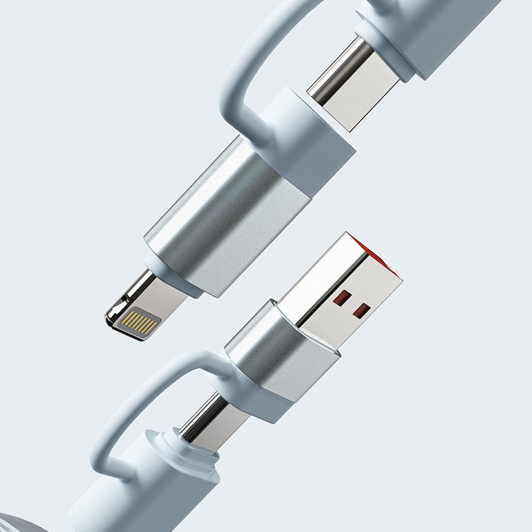 Four-in-one fast charging data cable blue 1PC