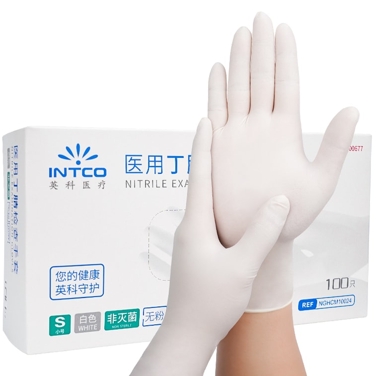 【中國直郵】 韓國 英德 英科一次性手套丁腈加厚耐用防疫醫護專用清潔醫用手套白色S碼 100隻*1盒