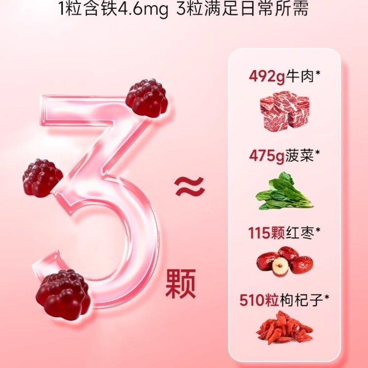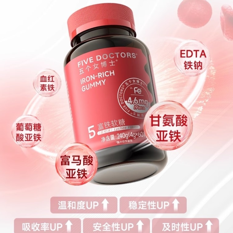 【中國直郵】 五個女博士 富鐵軟糖 補鐵元素女性氣血孕婦鐵劑口服 60粒/瓶 | 亞米