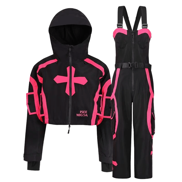 【中國直郵】【黑五大促】 ISEEMIGGA 【雪域黑玫】2025新款修身背帶褲滑雪服套裝女男單雙板 黑m