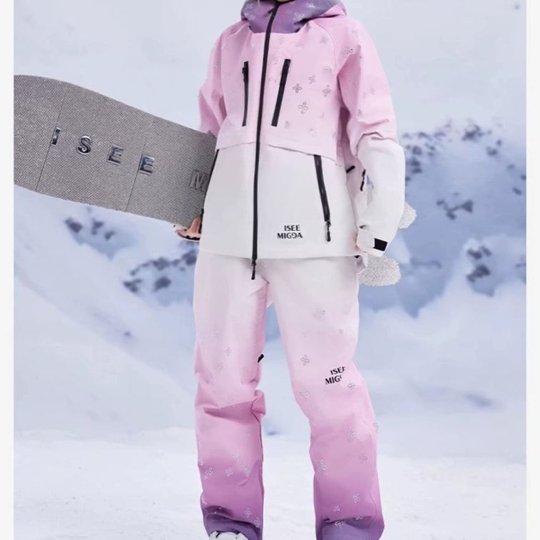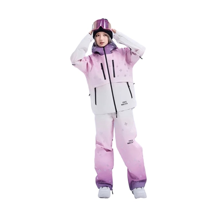 【中國直郵】【黑五大促】 ISEEMIGGA 【日落粉十字架】24新款滑雪服男女同款單雙板滑雪套裝 粉L