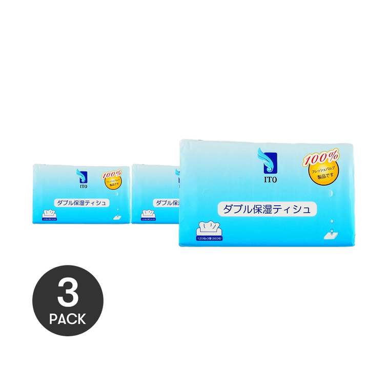 日本ITO艾特柔 雙重保濕紙巾 100% 原生木漿無螢光劑 家用抽取式 120組 *3【3份超值裝】