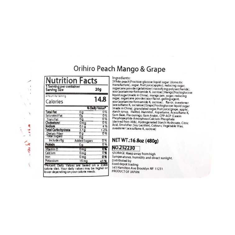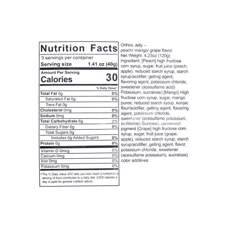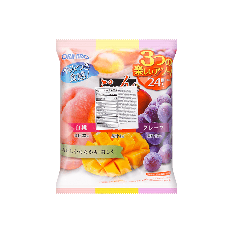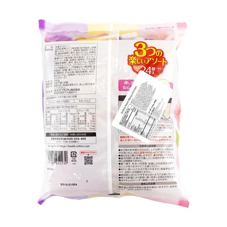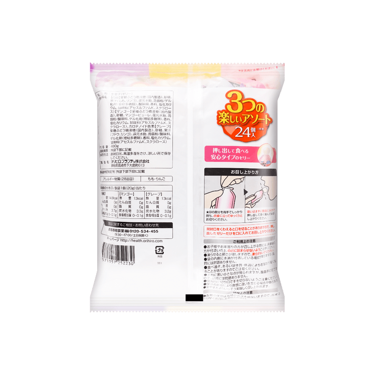 【0脂低卡】日本ORIHIRO 魔芋果果凍 混合口味 20g*24枚裝【蜜桃+芒果+紫葡萄】
