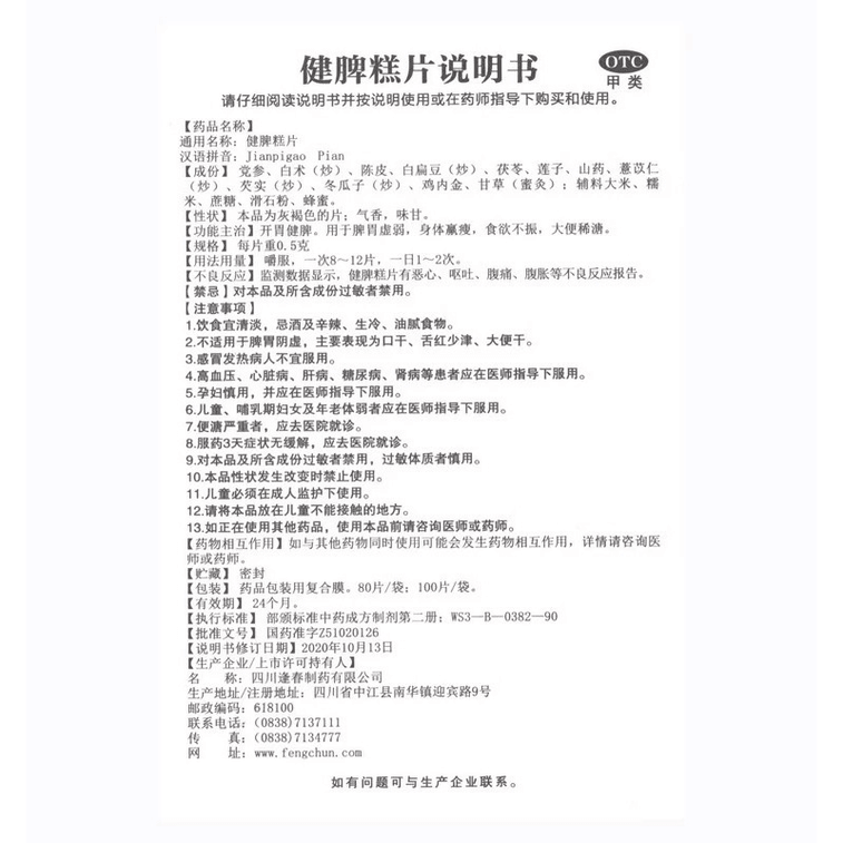 逢春 逢春 四川 健脾糕片 開胃健脾 嚼片 100片 健脾糕片開胃健脾。用於脾胃虛弱身體羈瘦食慾不振大便稀溏 | 亞米