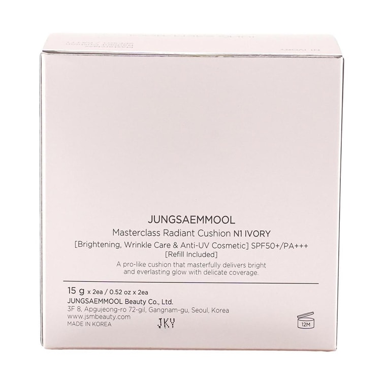 韓國JUNGSAEMMOOL鄭瑄茉莉 大師氣墊 水光防曬氣墊 亮彩淨白 長效持妝 無瑕奶油肌 #N1 Ivory象牙白 SPF50+ PA+++ 15g*2ea 【內含替芯】