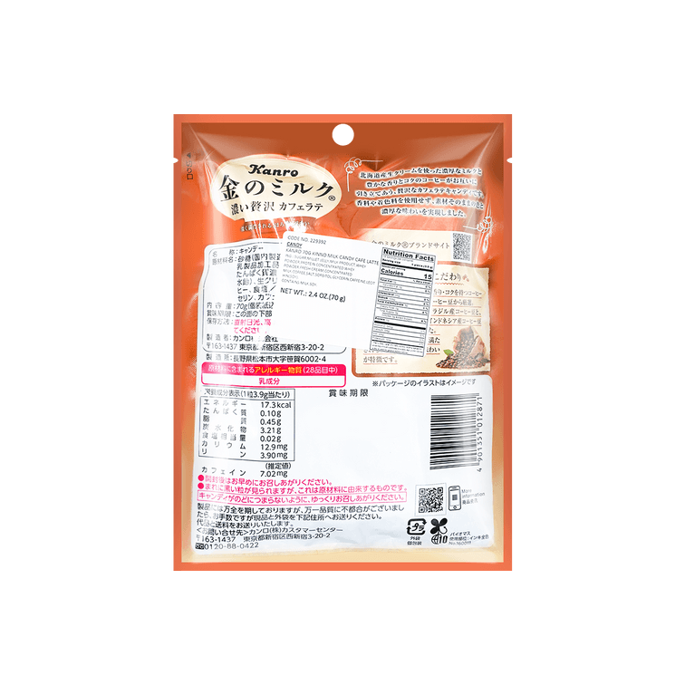 日本KANRO甘樂 北海道特濃牛奶糖 咖啡拿鐵味 70g