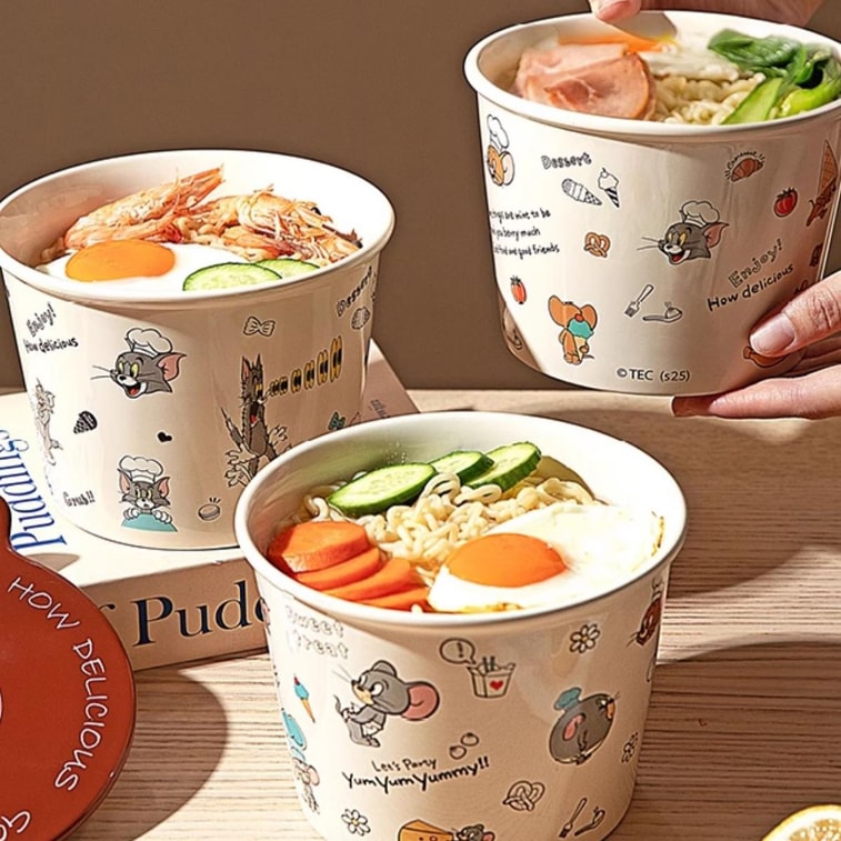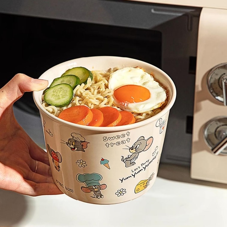 川島屋 陶瓷泡麵碗 大容量 帶蓋易清洗【貓和老鼠聯名款】1100ml 高11cm底15cm