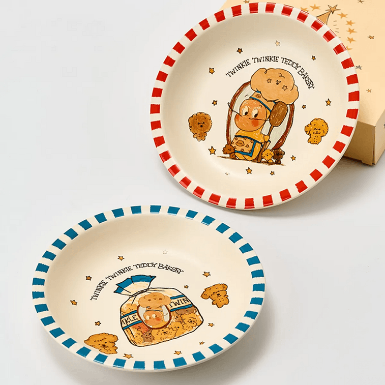 川島屋 星星人霧面深盤 陶瓷餐具 泰迪餅乾款 7.75吋 兩隻裝