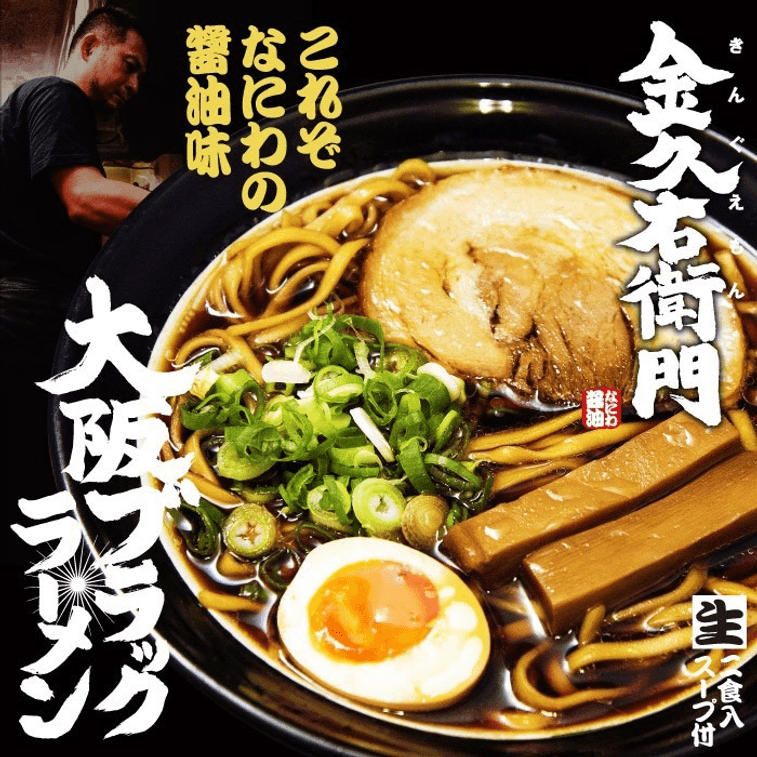 【日本直郵】大阪府 金久右衛門Kinguemon 黑拉麵 醬油拉麵 2人份 直面