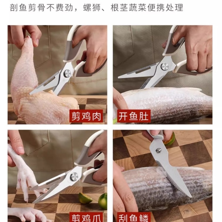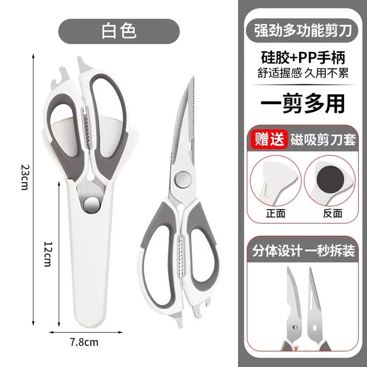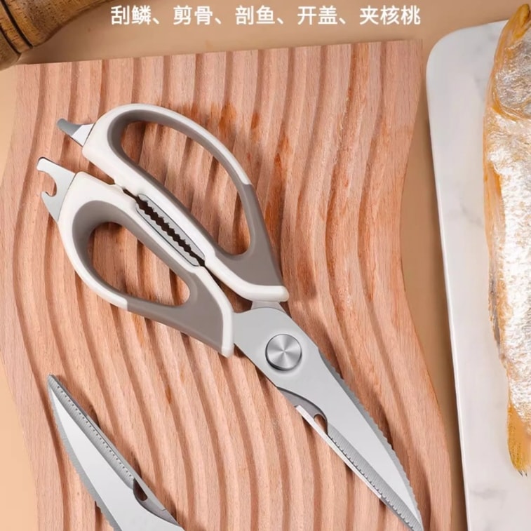 親太太 廚房剪刀不銹鋼多功能家用食物烤肉剪雞骨剪帶開瓶器核桃夾強力剪 白色 一把