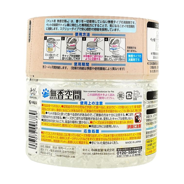 日本KOBAYASHI小林製藥 無香空間 寵物用消臭珠 室內家居除臭 無香型 470g
