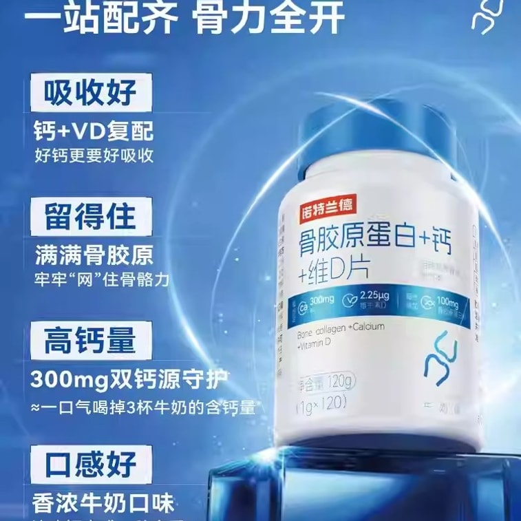 【中國直郵】 諾特蘭德 骨膠原蛋白鈣+維d成人中老年鈣咀嚼片正品非氨糖軟骨 120片/瓶 | 亞米