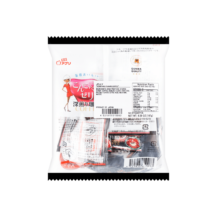 【富含膠原蛋白Collagen】日本YUKIGUNI AGURI 雪國蒟蒻果凍 深度烘焙咖啡風味 10個 187g