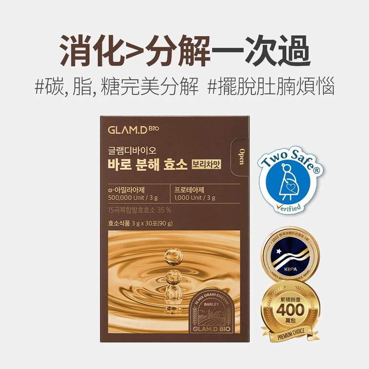 【香港直郵】 健康其他 韓國 GLAM.D 極速分解酵素粉 大麥茶口味 30包