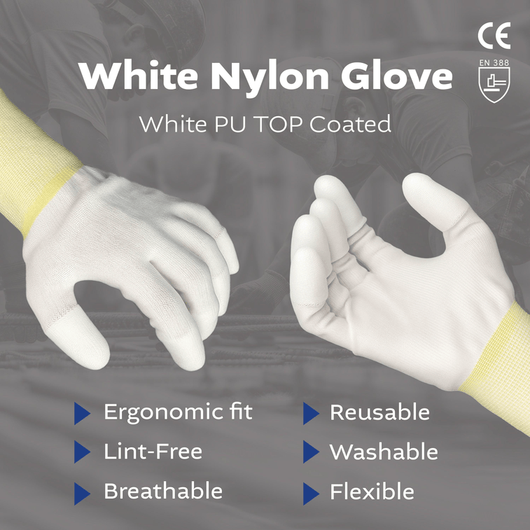 韓國 Kproduct4u 白色尼龍手套 白色PU頂塗 4種尺寸 5雙 M碼 | 亞米