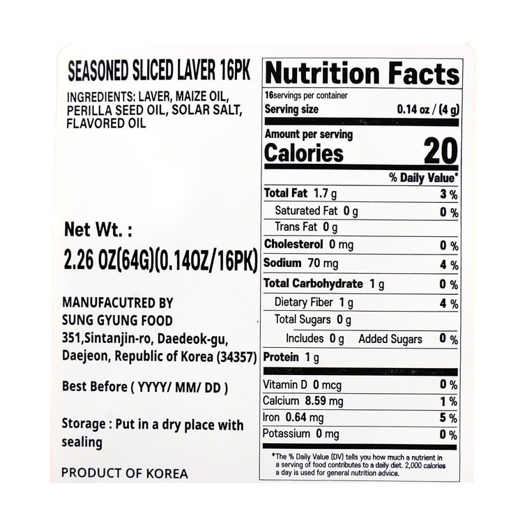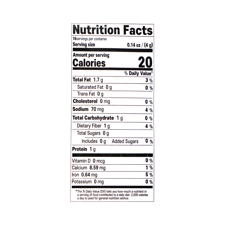 *免責聲明:本頁面所展示的營養成分資訊來自商品包裝,僅供參考。由於包裝版本、語言或拍攝方式的差異,內容可能存在偏差或顯示不完整,請以實際收到的商品包裝為準。若對成分、過敏原或適用族群有疑問,建議於使用前仔細閱讀包裝說明,或聯繫客服取得協助。