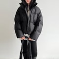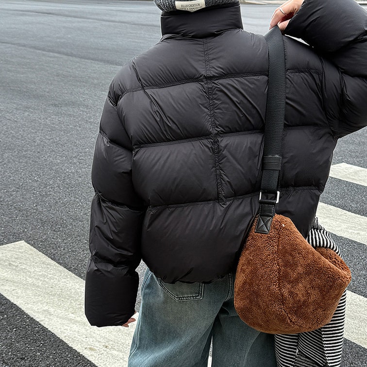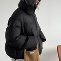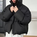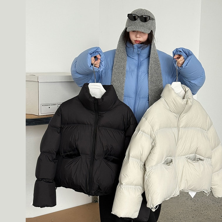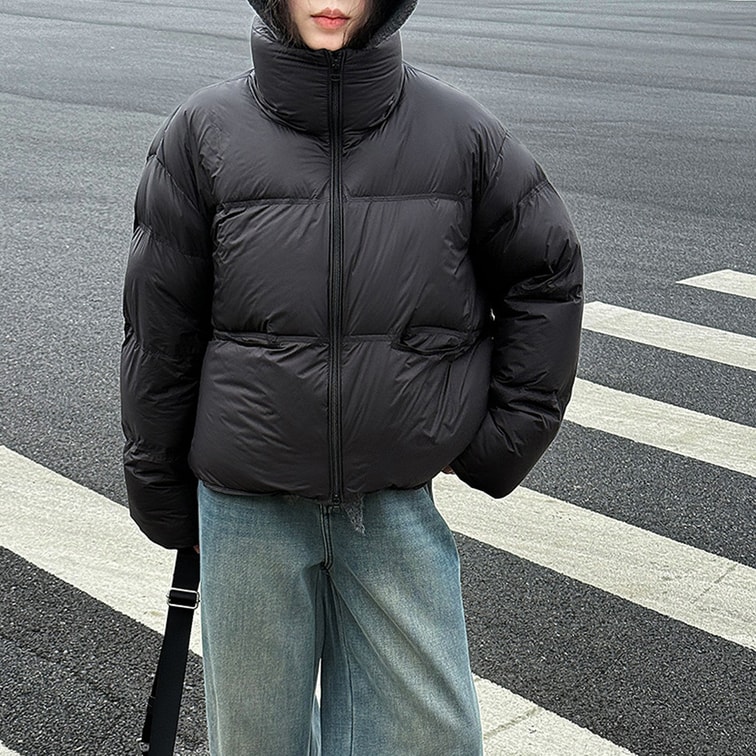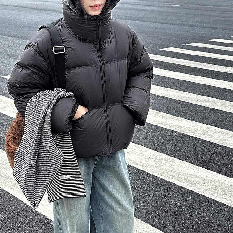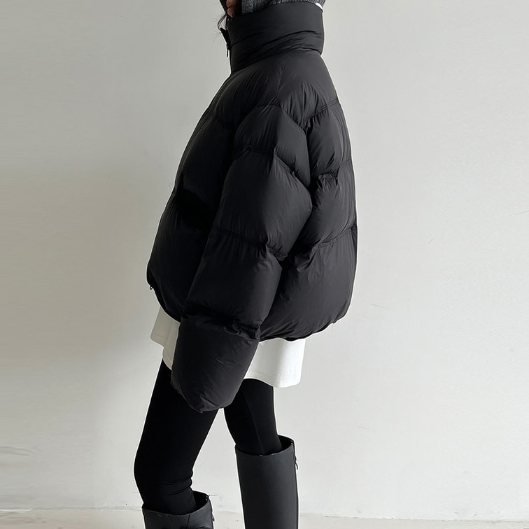 【中國直郵】 HSPM 韓版立領泡芙羽絨衣女新款冬季新國標90白鴨絨加厚麵包服外套 黑色L