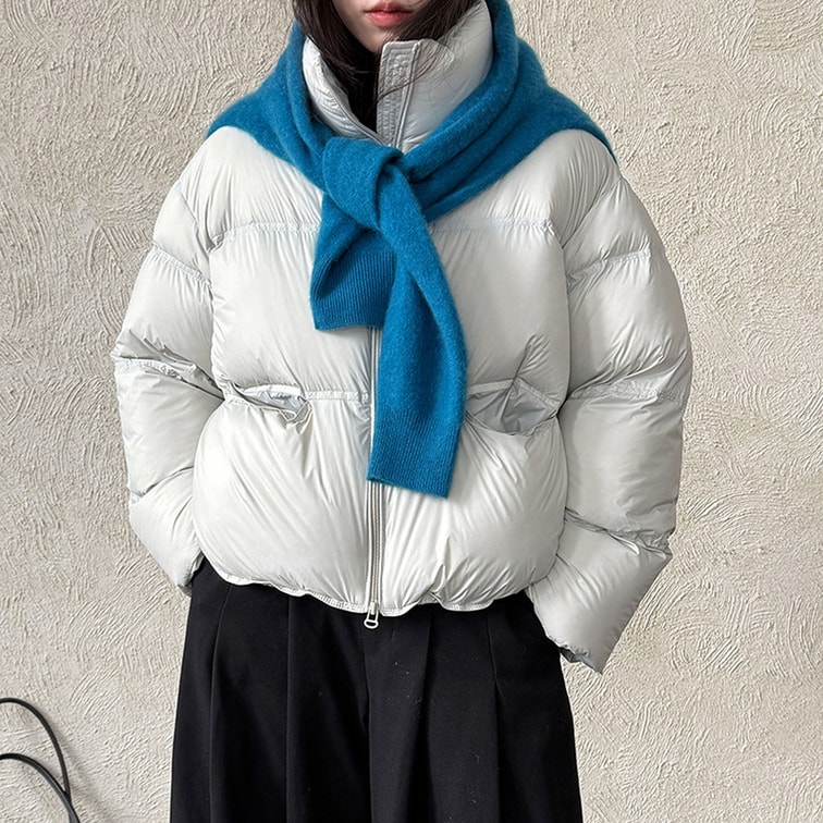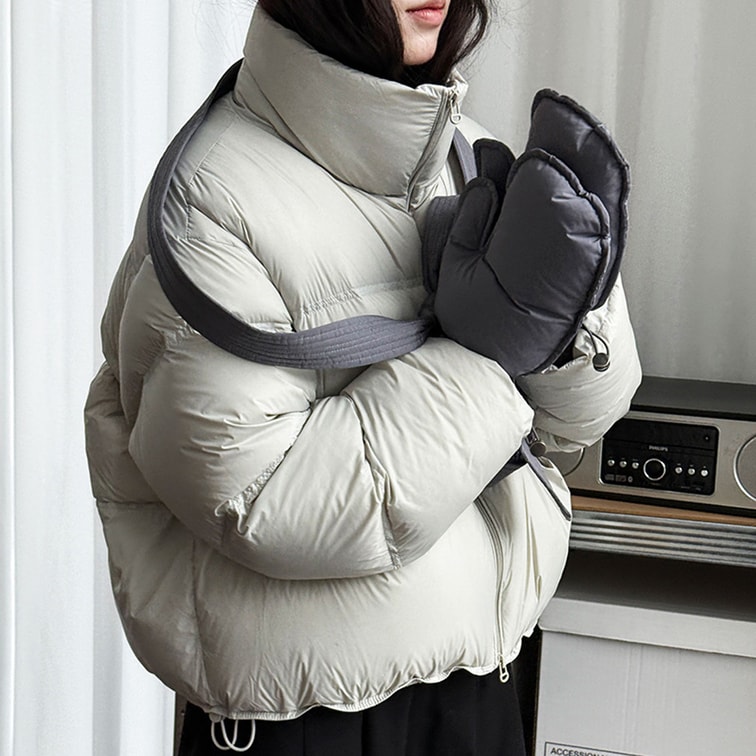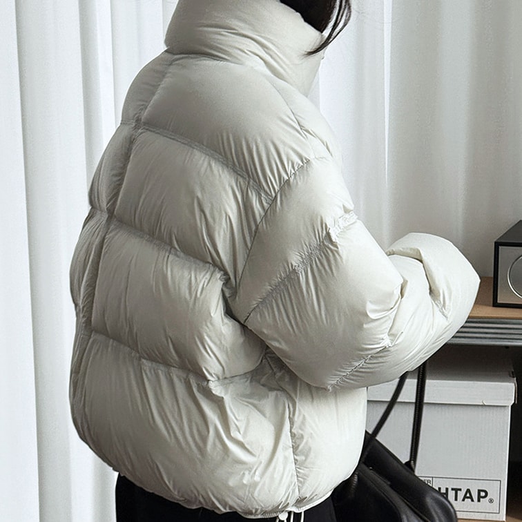 【中國直郵】 HSPM 韓版立領泡芙羽絨衣女新款冬季新國標90白鴨絨加厚麵包服外套 米白M