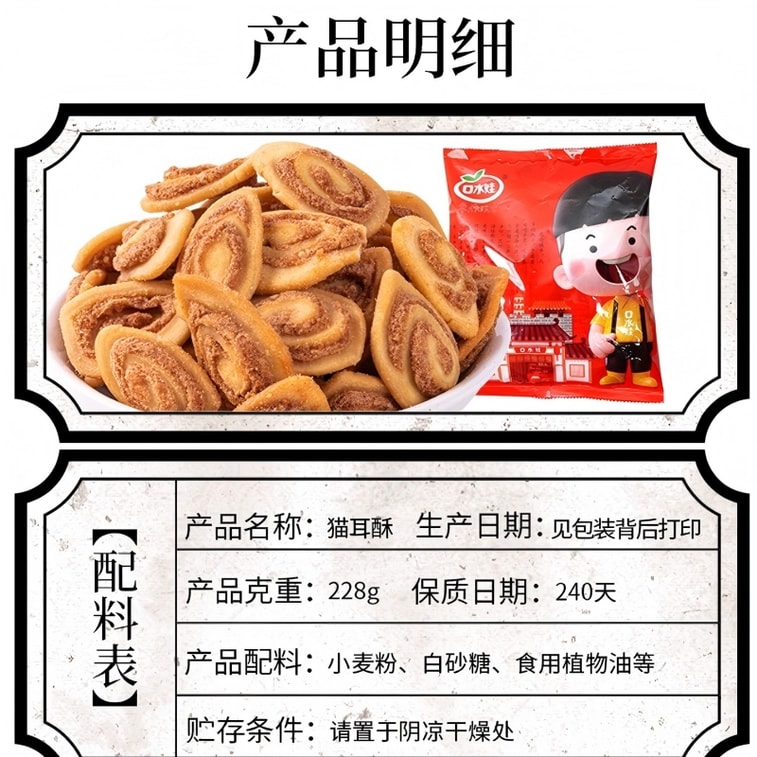 【中國直郵】 口水娃 貓耳酥 芝麻味 糕點 休閒零食 小吃 懷舊 228 克