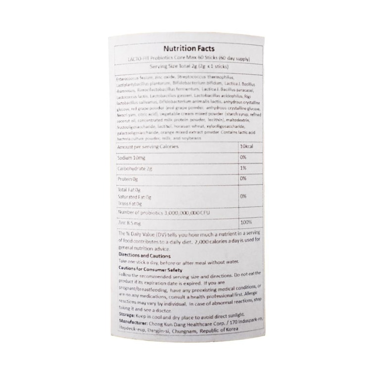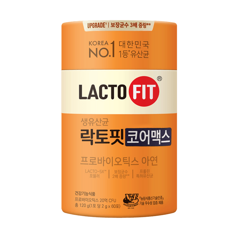 韓國LACTO-FIT 小韓國民益生菌 活菌MAX橘色加強版 鋅 60條 120g 保障腸道健康與免疫功能【免疫菌‧全家桶】