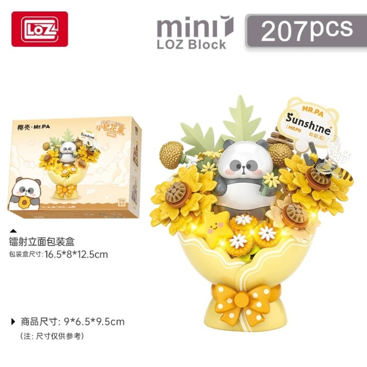 【中國直郵】 俐智 燈光版 熊貓花束積木 小顆粒 拼裝玩具 耙老師聯名款 小耙花束模型 禮物 閨蜜情侶- 黃色 1套*