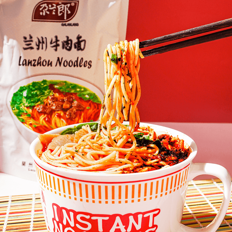 尕蘭郎蘭牛肉麵湯底香味濃,清涼清澈;麵條經傳統工藝製成,烘乾脫水後非油炸,口感順滑,麥香濃鬱,安全健康;辣椒油色澤紅艷,香味獨特,辣而不燥;蘿蔔綿軟入味,口感純正;蒜苗香菜運用凍乾技術製成,口感鮮美,保持了新鮮蒜苗香菜的原味。麵條爽口柔韌,湯底醇厚香濃,香味撲鼻,是正宗的蘭州味道。