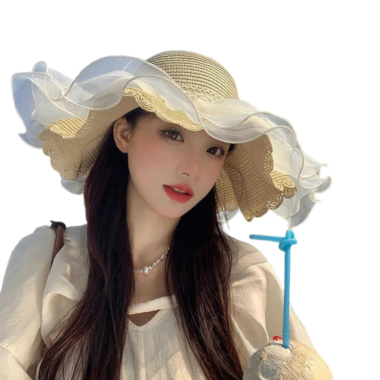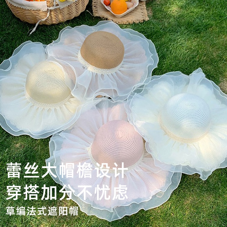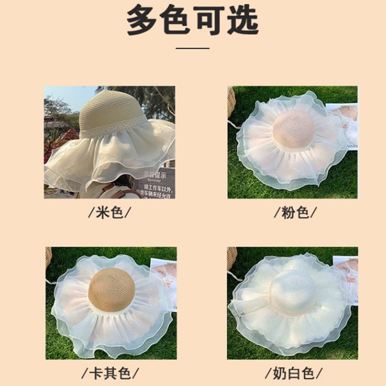 【中國直郵】 HSPM 大帽簷夏天防曬草帽 氣質女款春夏太陽帽 沙灘度假遮陽帽 米色F 1頂 | 亞米