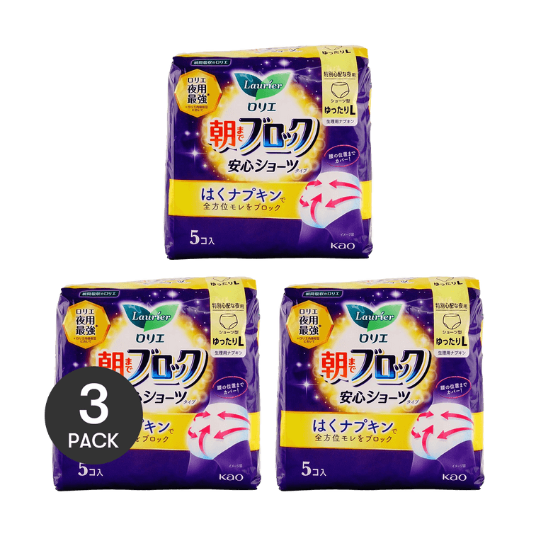 日本KAO花王 LAURIER樂而雅 A超吸收安睡系列 夜用最強全方位保護 安睡褲晚安褲 褲型衛生棉 L號 5片入 (包裝隨機發送)