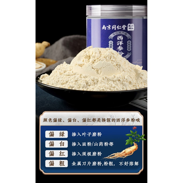 【中國直郵】南京同仁堂 西洋參粉 人參粉花旗參切片 補肺降火 養胃生津100g/罐