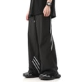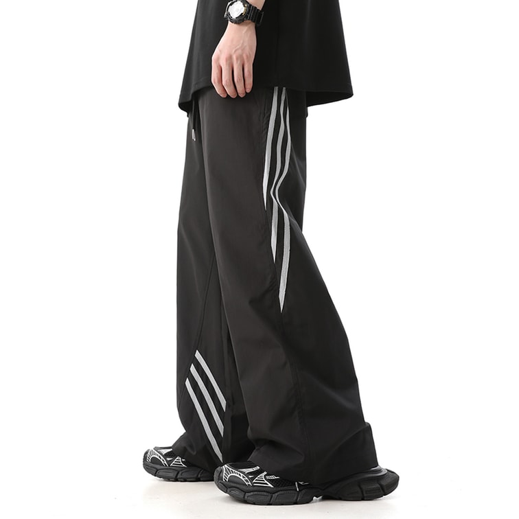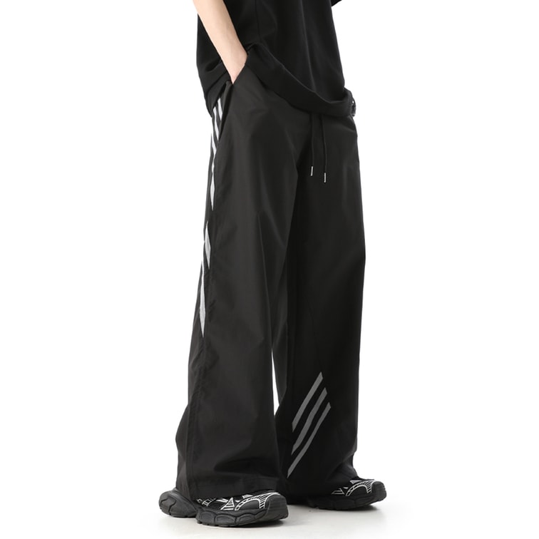 【中國直郵】 HSPM 寬鬆帥氣條紋直筒休閒褲 黑色 S