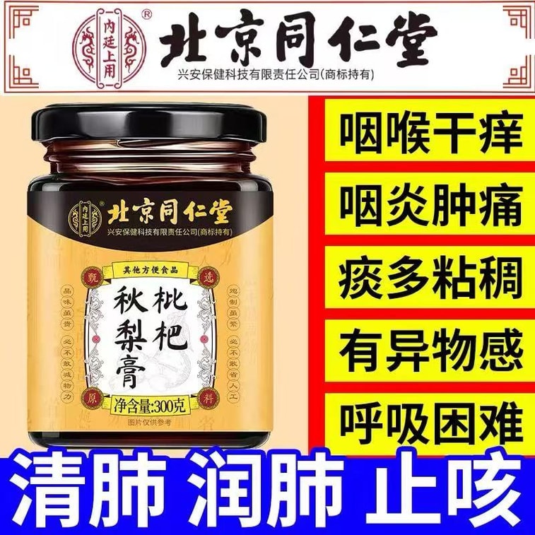 北京同仁堂 枇杷秋梨膏 滋補潤喉 瓶裝300g 【清熱潤肺 化痰止咳 生津止渴 對於痰黃黏稠 咽喉乾癢 聲音沙啞 口乾舌燥有很好的緩解作用】