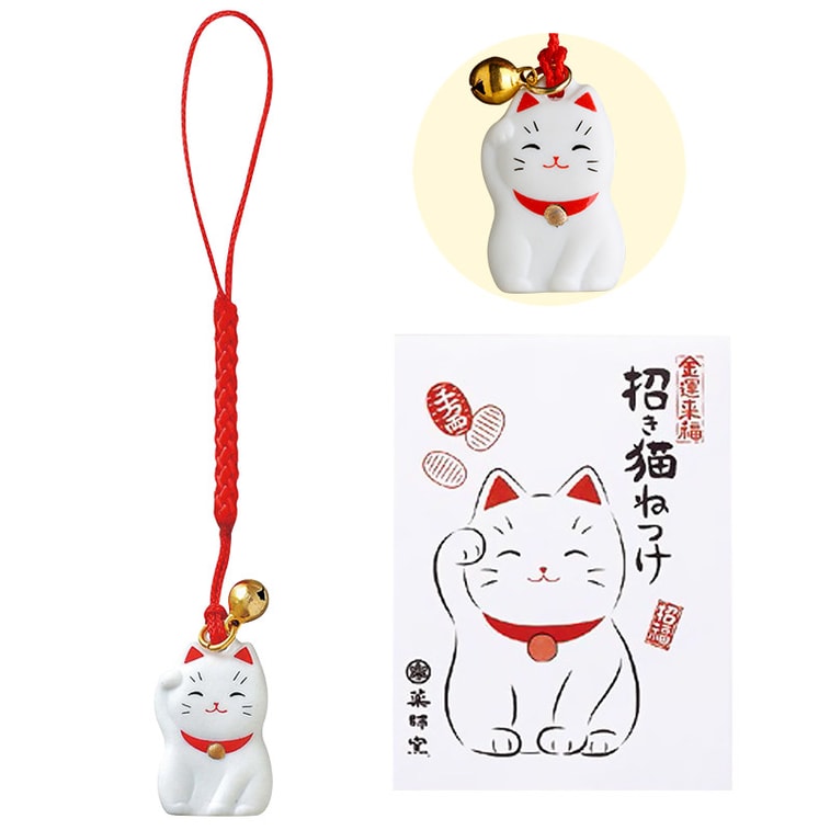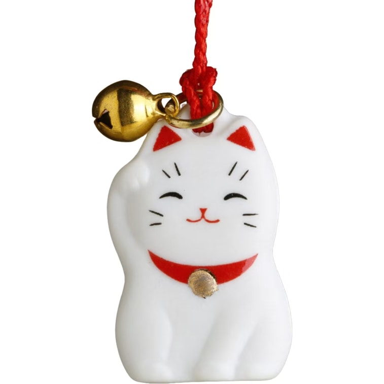 【中國直郵】 招財貓手機掛飾 【白色陶瓷】 高2.5cm 1個裝