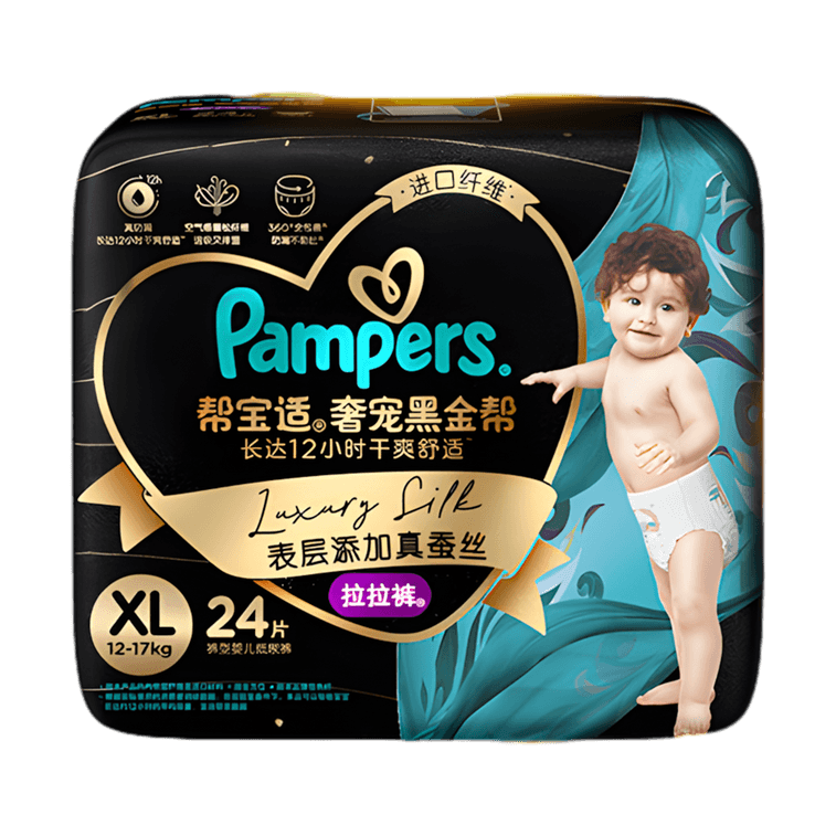 PAMPERS幫寶適 奢寵黑金幫 蠶絲超薄透氣拉拉褲 XL碼 12~17kg 24片