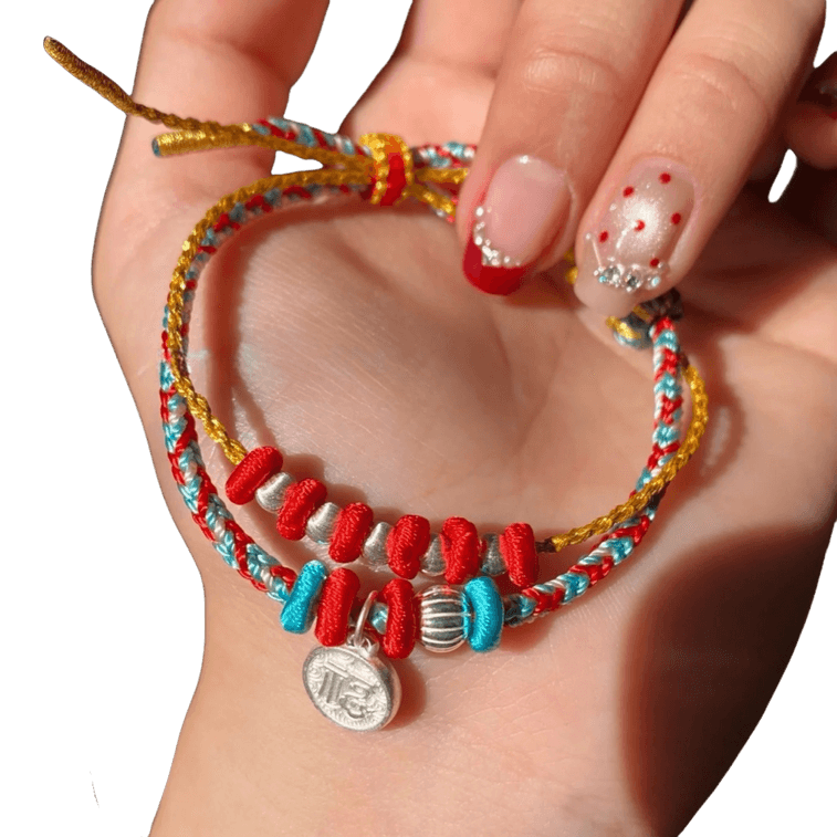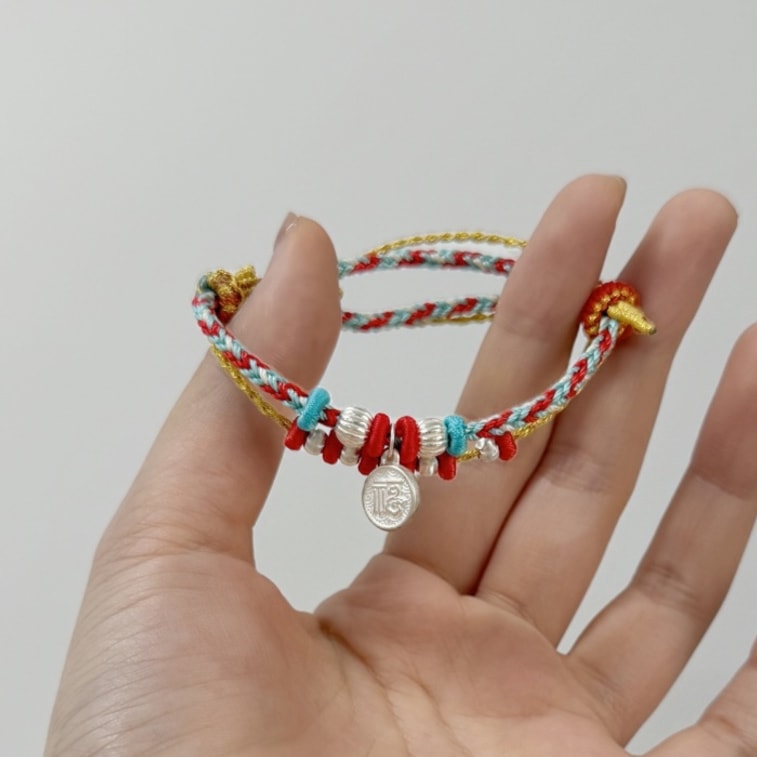 【五福臨門】925純銀五彩繩新年本命年紅手繩手鍊 非遺古法編製 稱心如意護身符 本命年祈福飾品