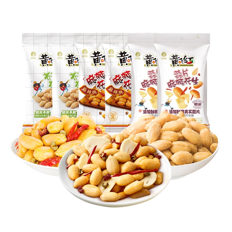 【中國直郵】黃飛紅 混合口味花生米 麻辣/芥末/蒜片 脫油花生零食下酒菜 116g*6袋