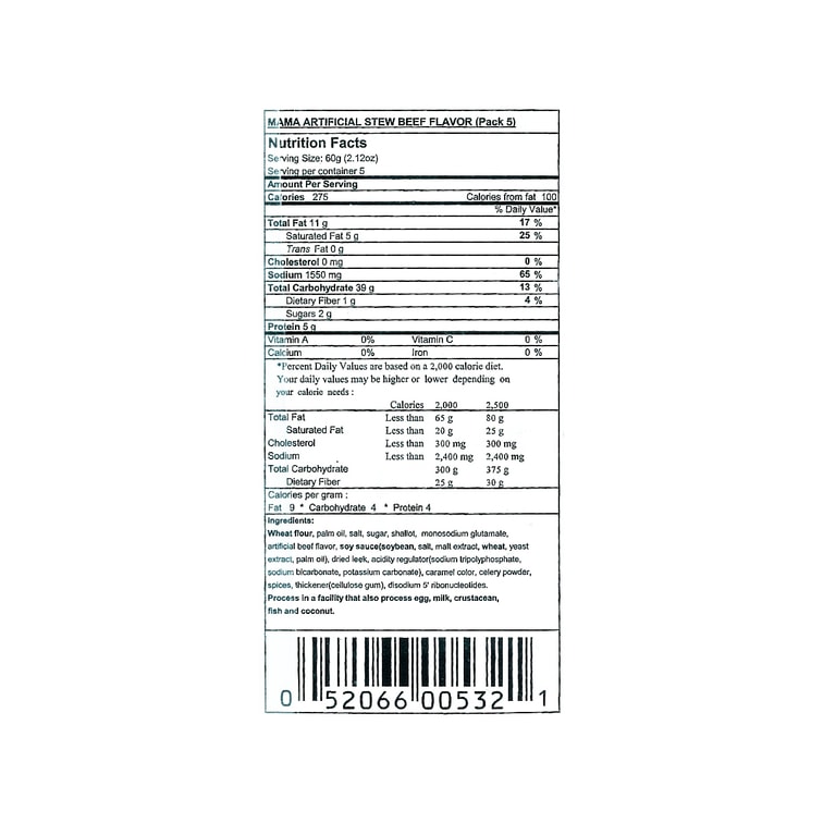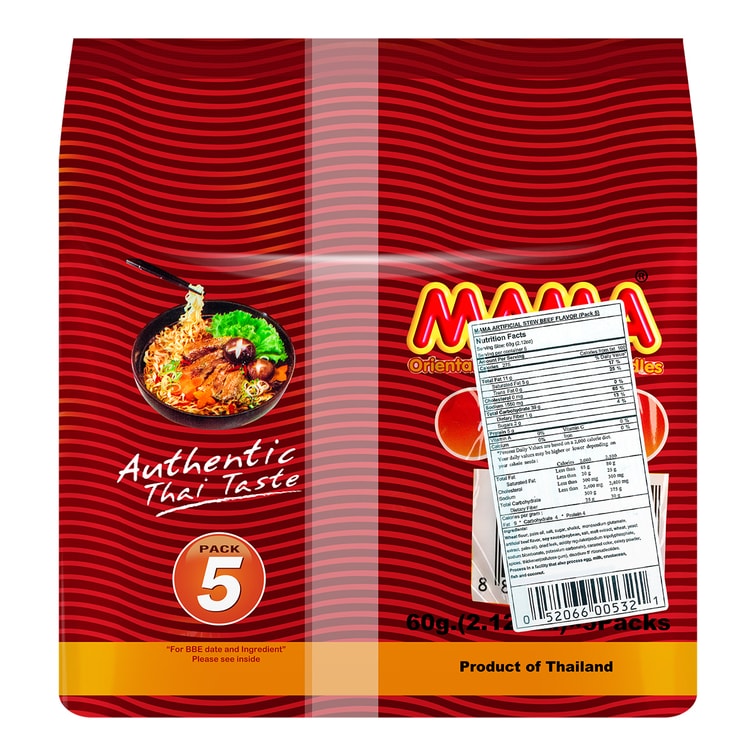 泰國MAMA媽媽 泡麵 燉牛肉口味 5連包 300g