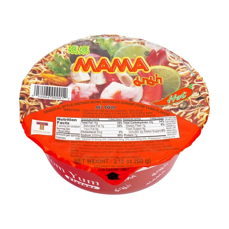 MAMA媽媽 泰國MAMA媽媽牌 冬蔭功蝦口味碗裝泡麵 45g【泰式酸辣·速食經典】 | 亞米